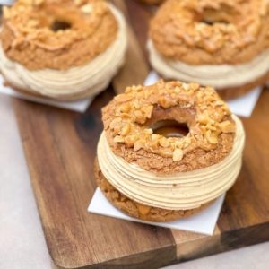 Chocolat aérienne, namelaka vanille, biscuit et croustillant chocolat, cœur fondant chocolat-caramel et glaçage chocolat.Un entremet pour les amoureux du chocolat… vraiment. - Le Gourmand Paris-Brest Cacahuète