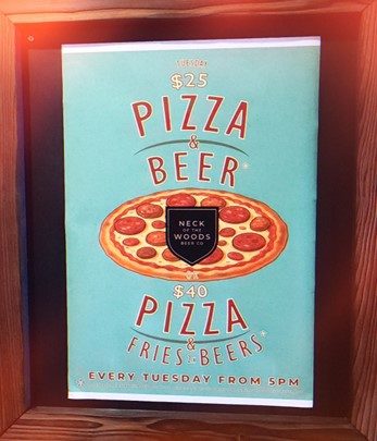The Neck of the Woods Food Co eatery was the first step in the hospitality project conceived by Virgile Meiller and Scott Taylor but, great news, the Craft Brewery and Pub Restaurant are now up and running too. Check out their menu. (I particularly like the names of the children’s dishes.)